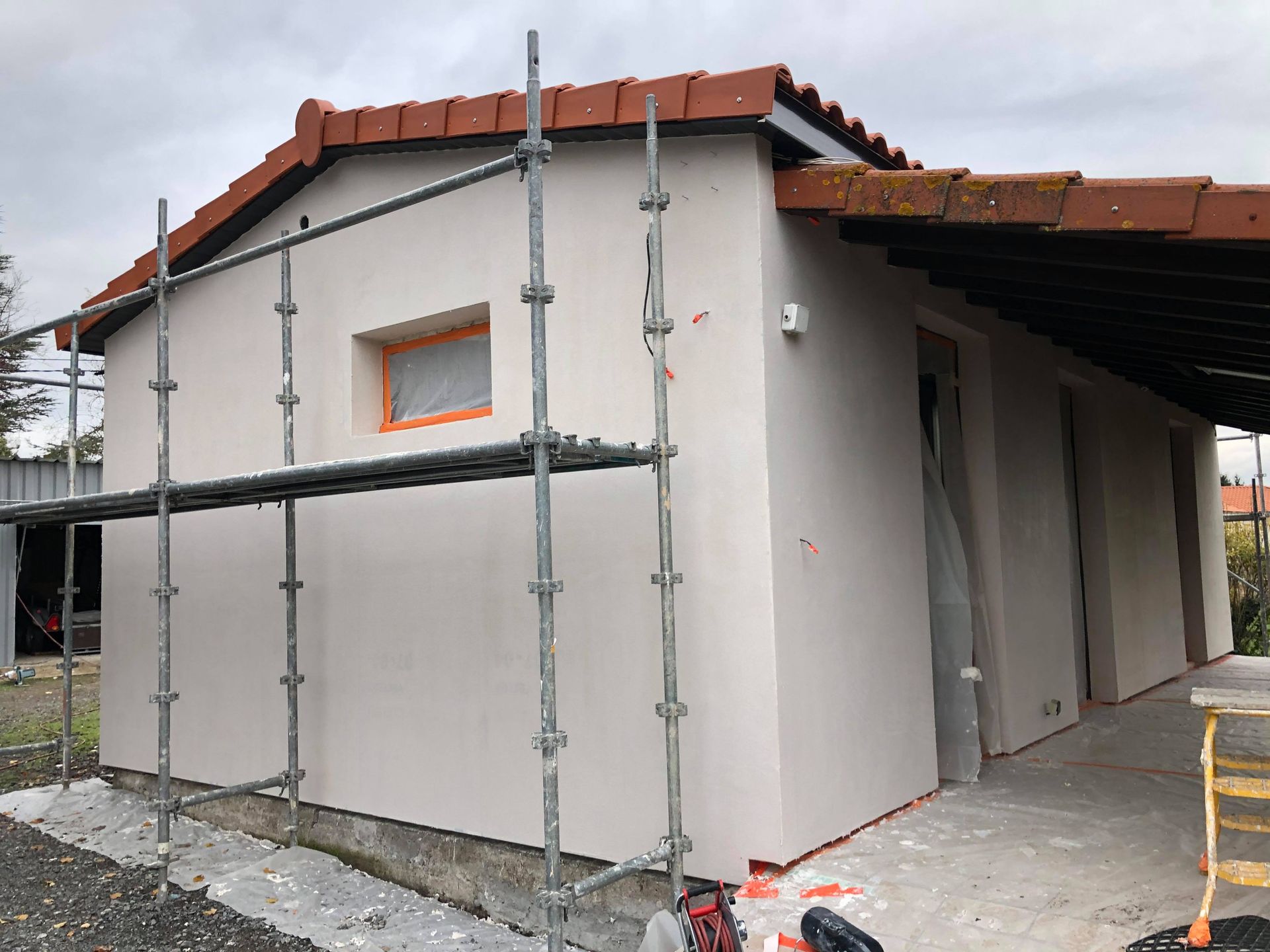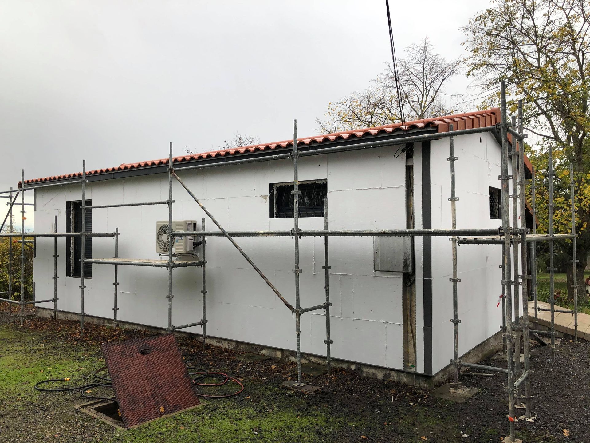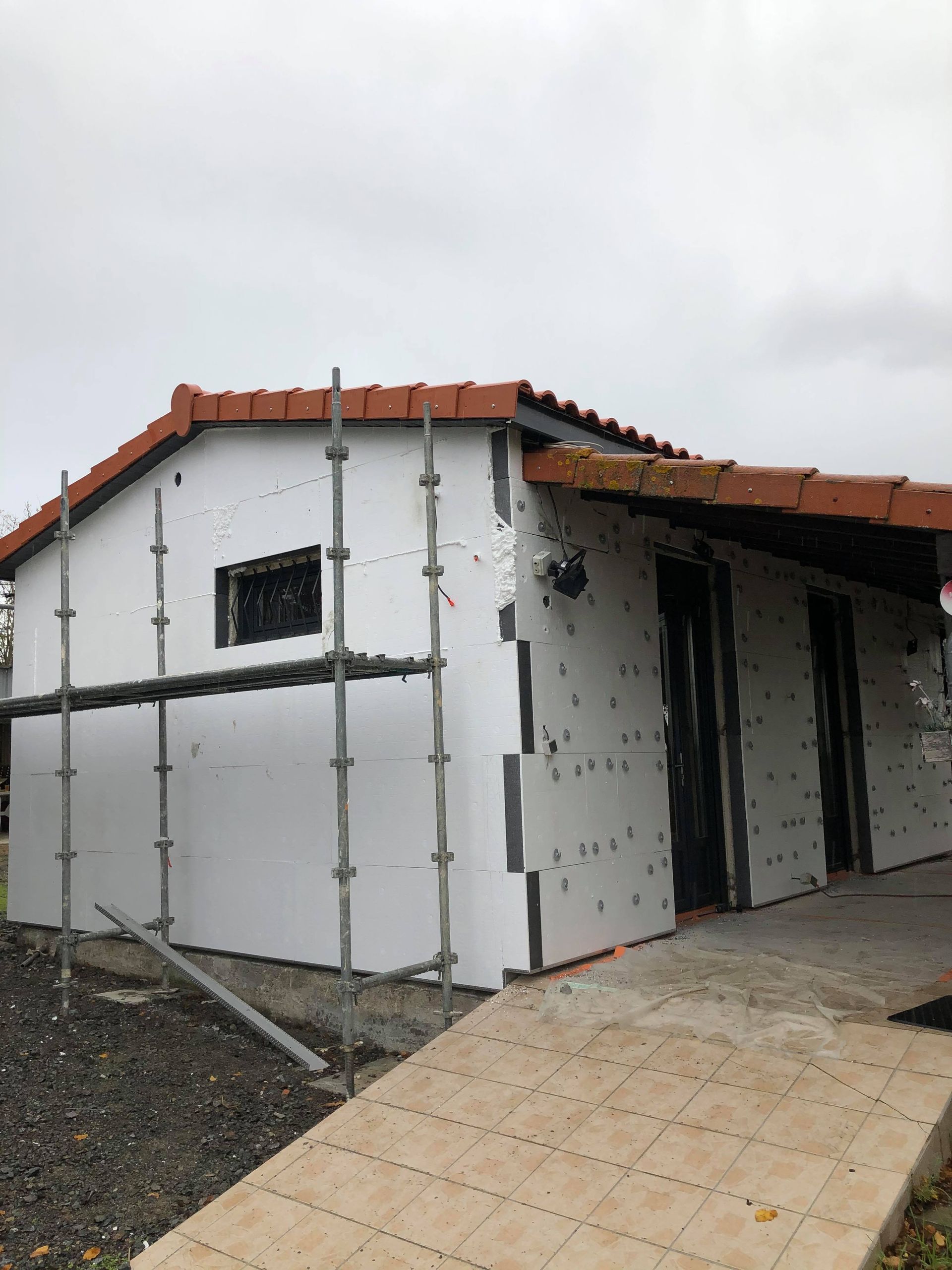 Réalisation d'une isolation thermique par l'extérieur.