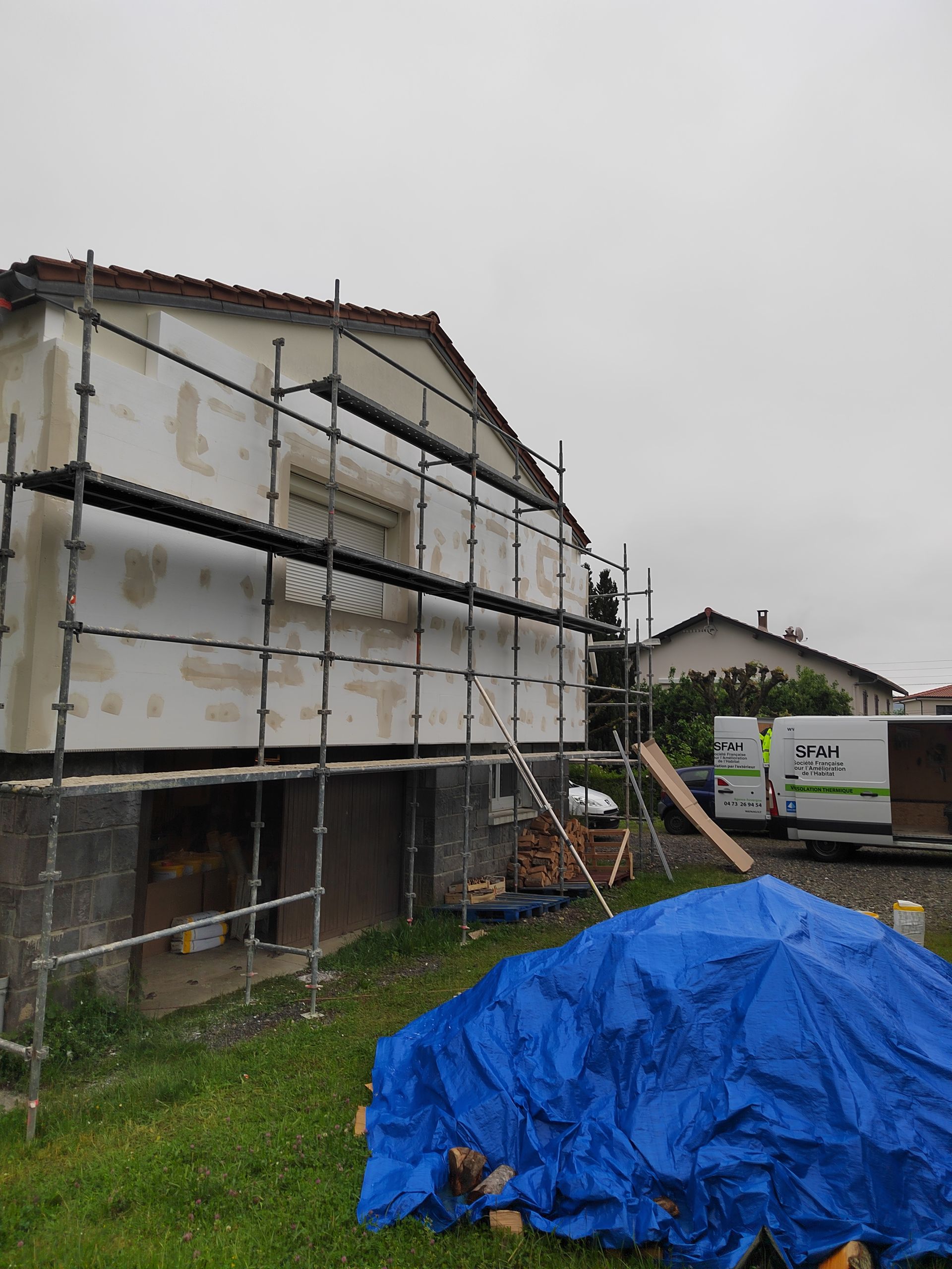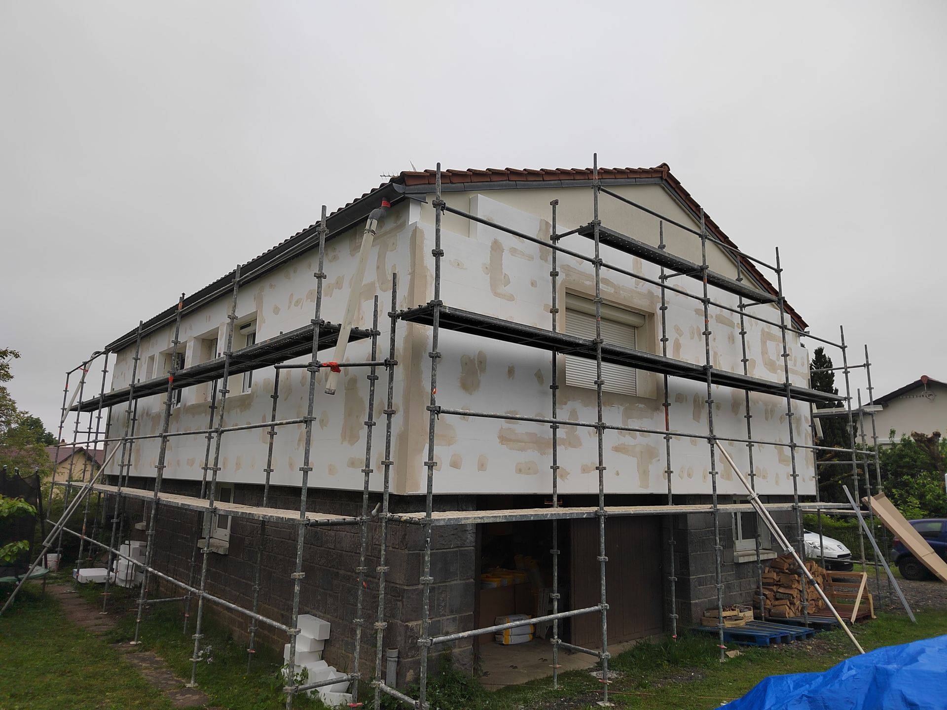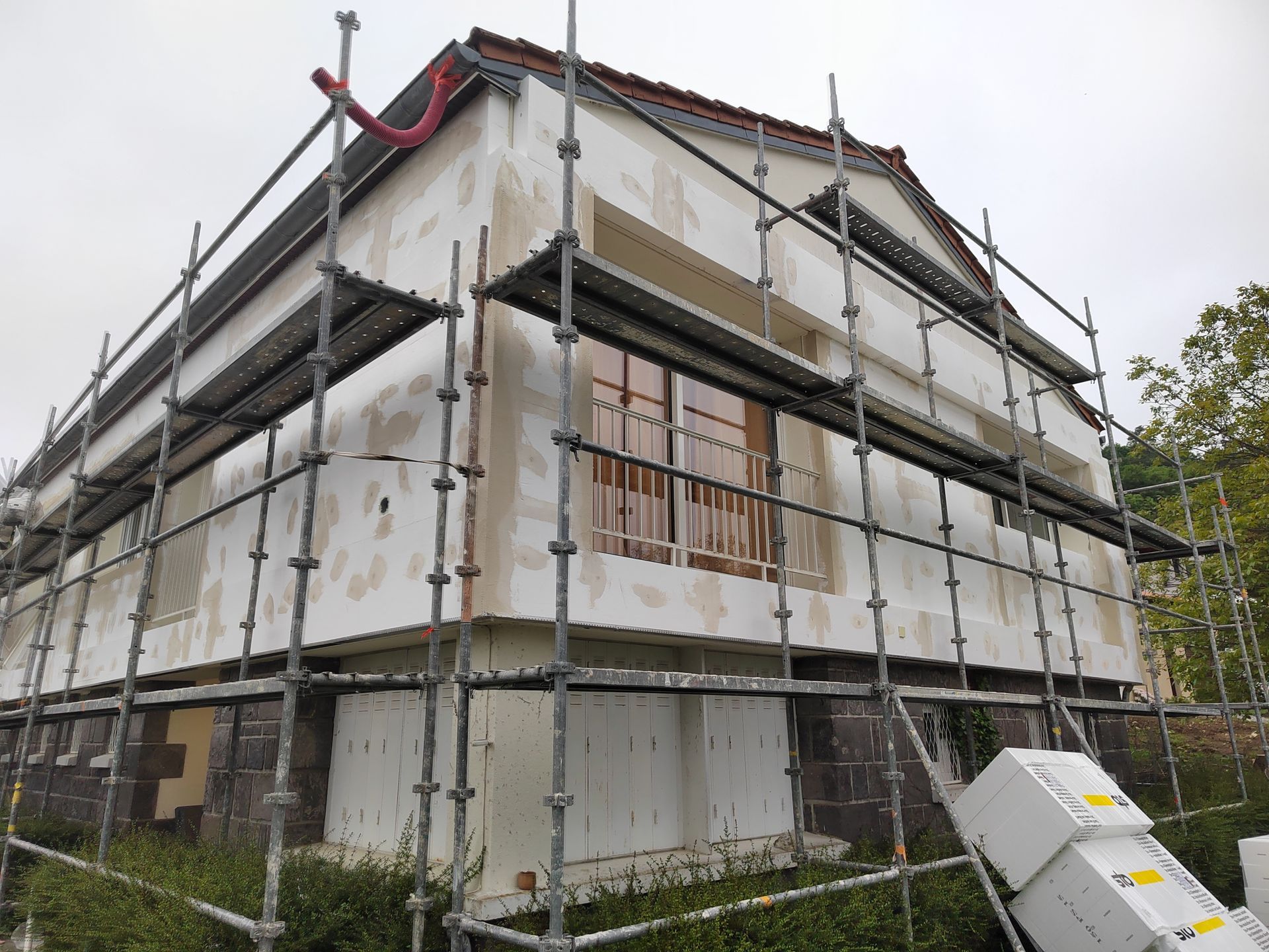 Réalisation d'une isolation thermique par l'extérieur.